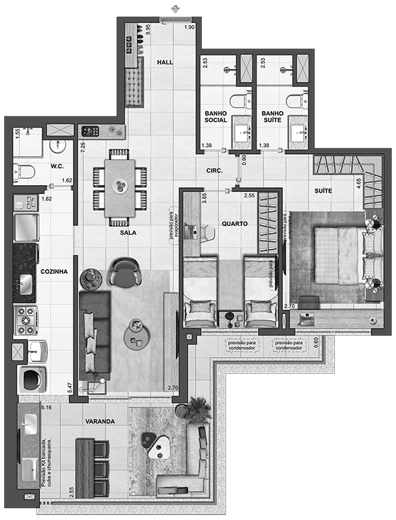 ÁREA PRIVATIVA: 97,37m²
